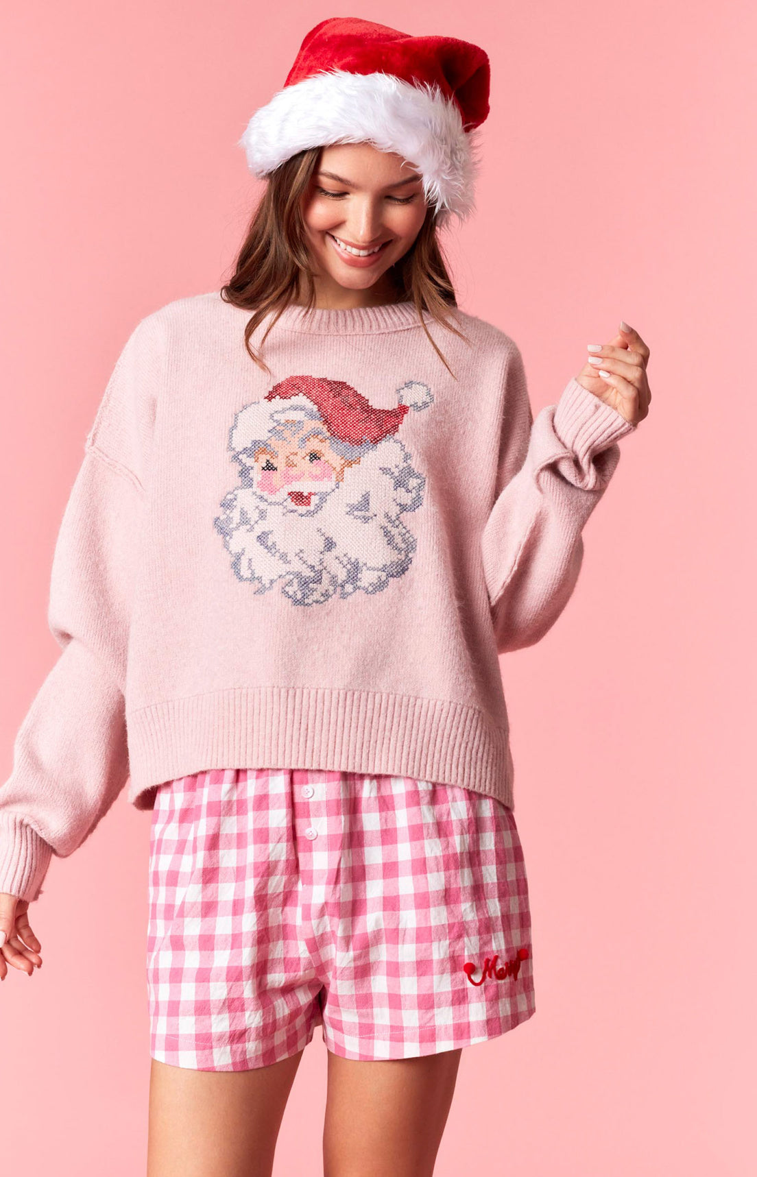Meet the Jolly Santa Stitch Sweater—a holiday classic you’ll love year after year. 🎅💖 Set on a playful pink knit, this festive pullover features a cheerful Santa with his signature red hat, brought to life with stitch and border detailing that adds charm and texture. Cozy yet statement-making, it’s the kind of sweater that instantly puts you in the Christmas spirit. Perfect for parties, family gatherings, or just sipping cocoa by the tree, this one is a forever favorite you’ll reach for every holiday season.