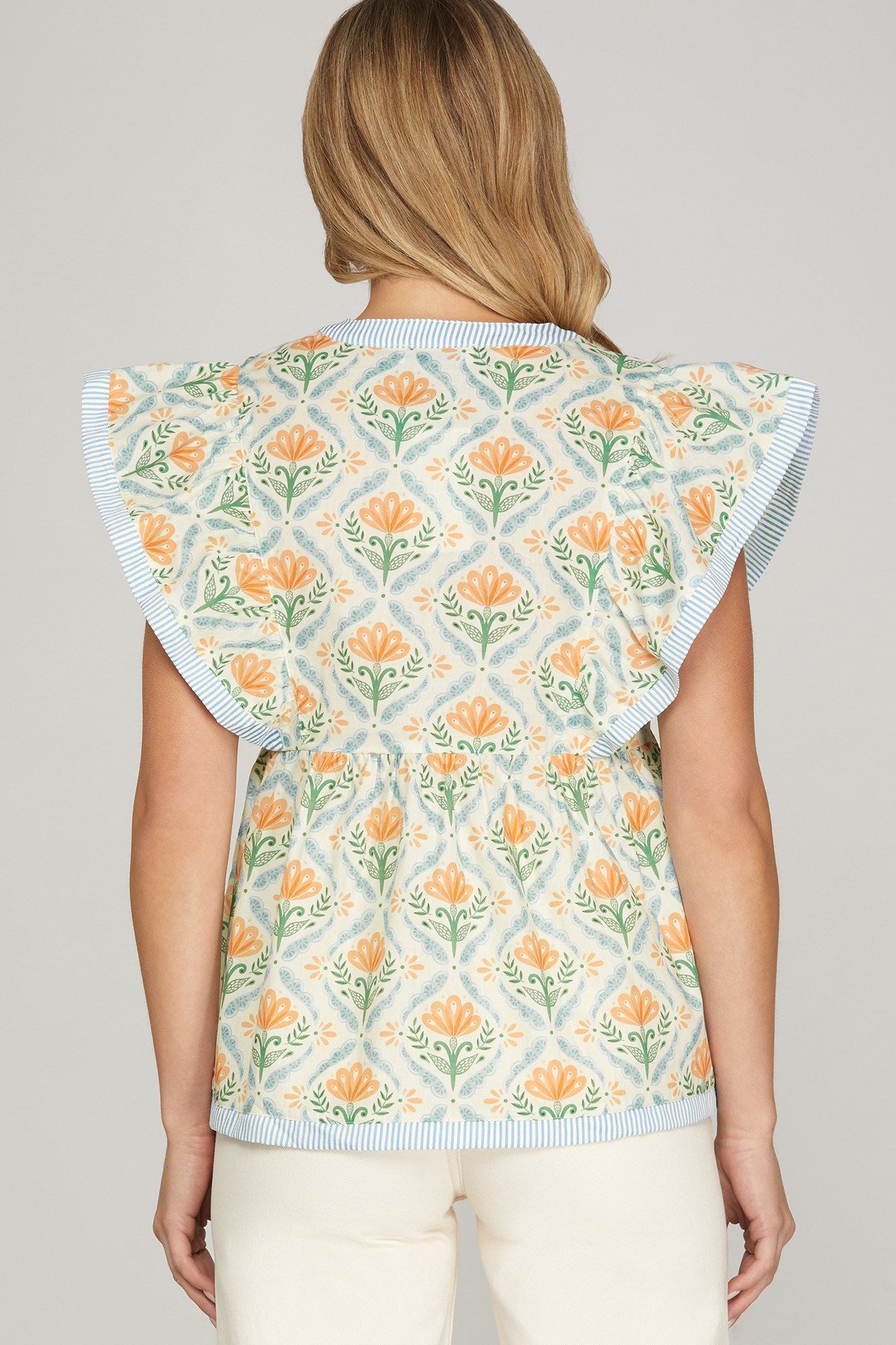 Add a touch of playful femininity to your wardrobe with this ruffle sleeve printed top. Lightweight and easy to wear, it features delicate ruffle sleeves that create soft movement and a flattering silhouette.