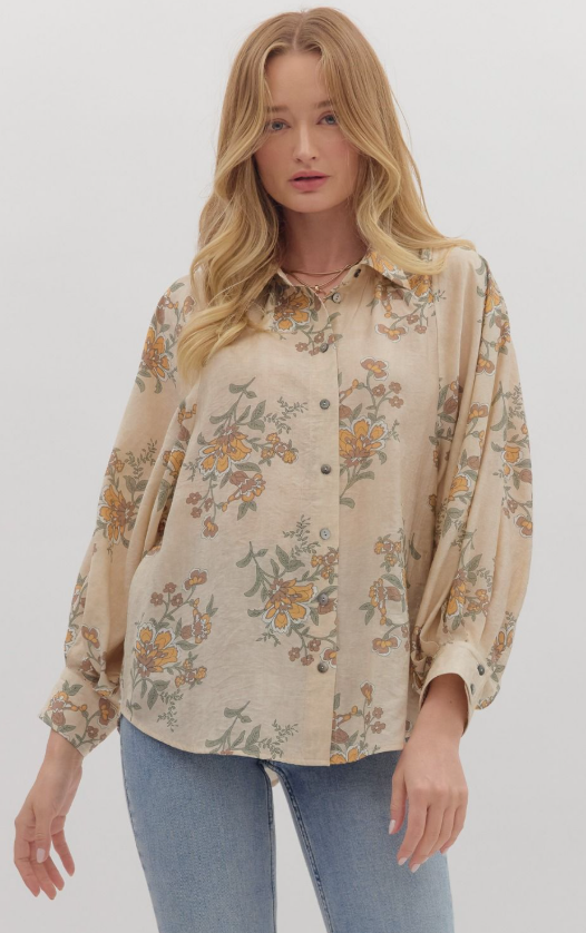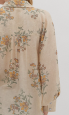 The Marigold Top is a fresh take on feminine florals, perfect for the shift into fall. Designed in a soft ecru with hints of mustard and mauve, this lightweight blouse features a classic shirt collar, button-front closure, and button cuffs. Gentle pleating at the shoulders and a back yoke add subtle volume and flow, giving it an effortless drape. Unlined and easy to style, it’s the kind of piece that feels both timeless and super cute for the season ahead.
