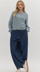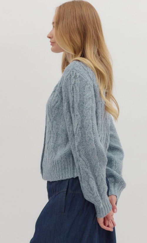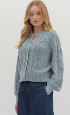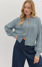 Cozy meets chic in this cable knit long sleeve sweater cardigan! Featuring a classic textured knit and gold accent button closures, this piece adds a touch of polish to any outfit. It’s the perfect layering staple—whether you’re tossing it over a dress for a cooler evening or styling it with a tank and jeans for a casual day out. Super cute, soft, and effortlessly stylish!