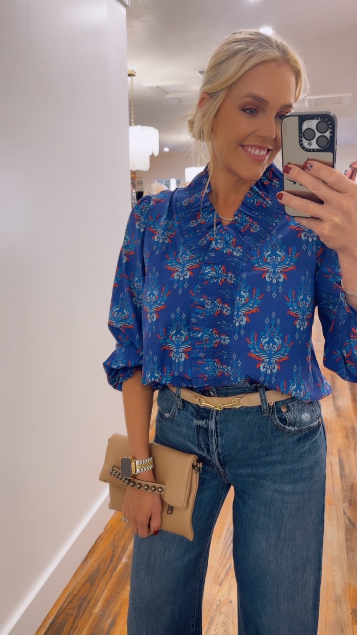 This ruffle boho accent print top is a dreamy fall staple. Designed with long sleeves and soft ruffle detailing, it flows effortlessly with a relaxed, bohemian vibe. The accent print adds just the right pop of pattern, making it versatile yet unique. Lightweight and easy to wear, it’s the perfect top to take you from crisp fall days to cozy nights.