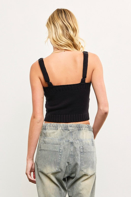 This corset rib-detailed strap crop sweater top is all about giving cozy vibes with a flirty twist! The corset-style ribbing snatches your waist while the straps add just the right touch of edge. It’s cropped perfectly to pair with high-waisted jeans for a casual-chic look or a sleek mini skirt for a night out. Toss on some chunky boots or strappy heels, layer with gold jewelry, and you’re ready to slay from brunch to late-night hangs!
