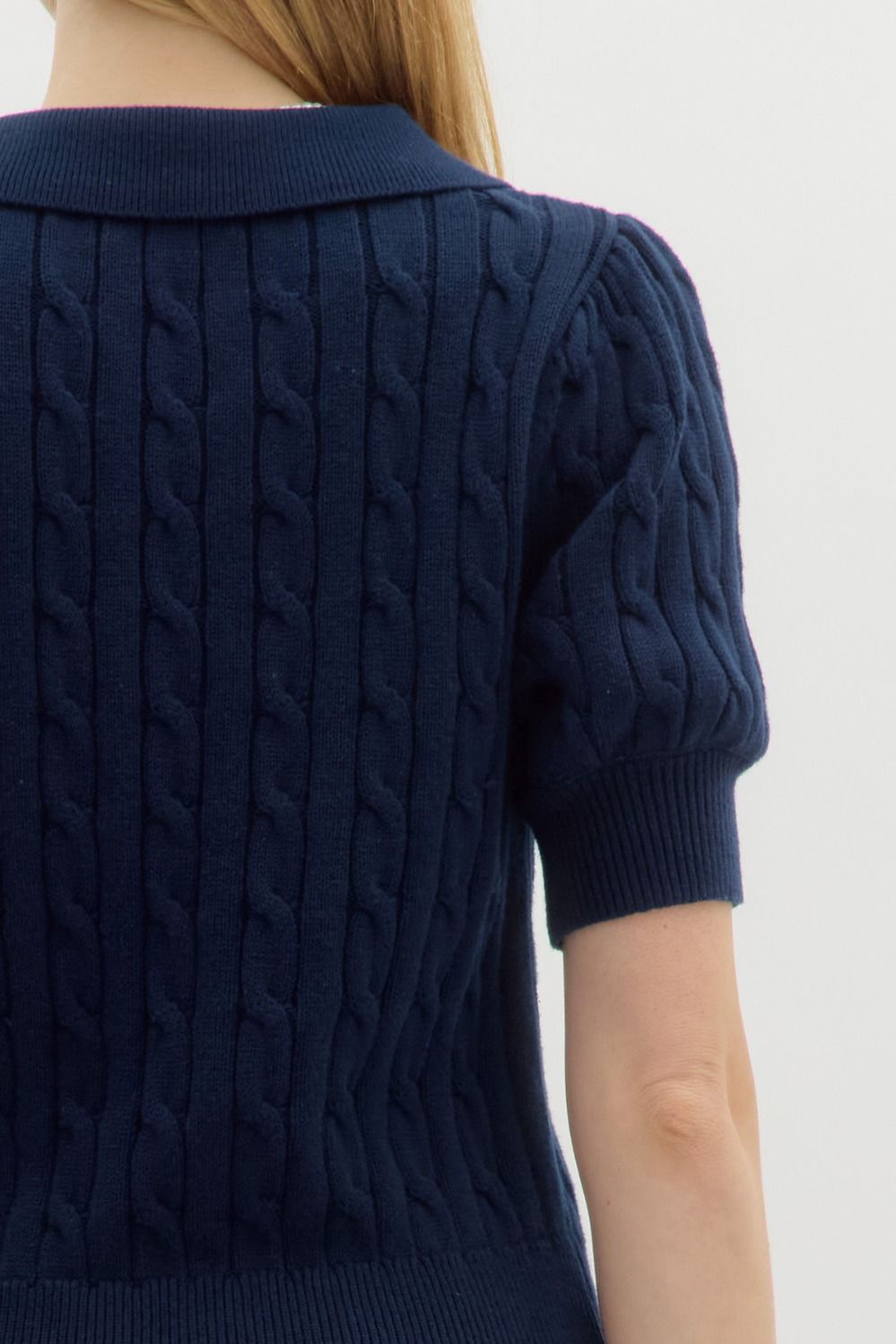Classic with a twist — this solid sweater cable knit pullover top features short sleeves and a chic spread collar for a polished yet relaxed look. Lightweight and easy to layer, it’s perfect for transitioning through the seasons. Pair it with denim for a casual vibe or tuck it into a skirt for something more refined.