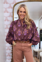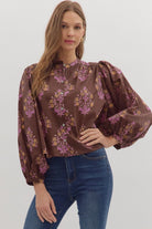 Romantic and timeless, this floral print blouse features long puff sleeves with elasticated cuffs for just the right touch of volume. A chic band collar and front button closure elevate the look, while the lightweight woven fabric makes it easy to wear from workdays to weekends. Non-sheer and unlined, it’s a polished piece with endless styling potential.