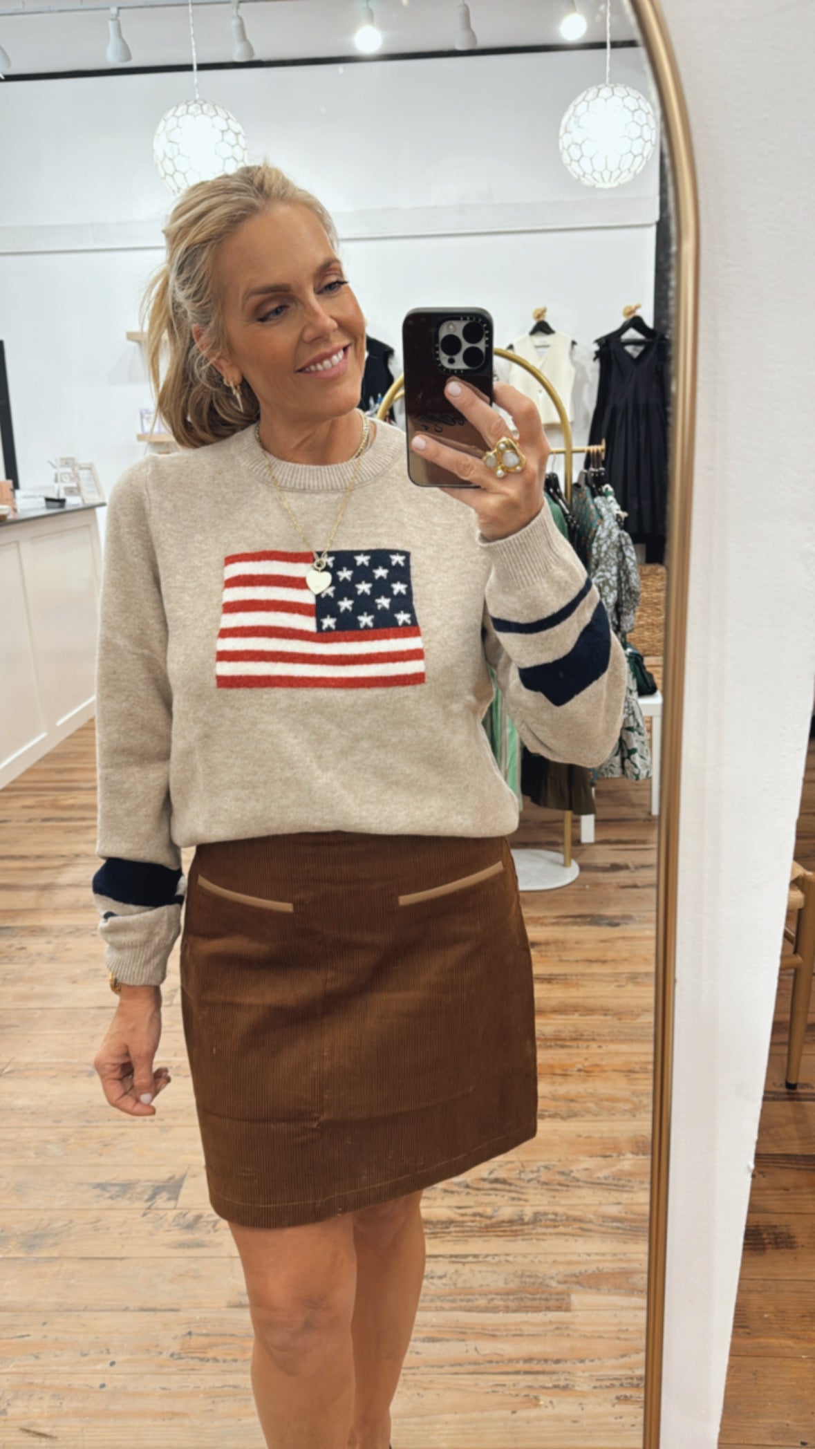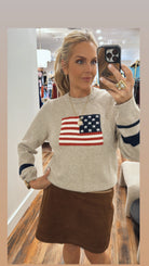 A stunning oatmeal backdrop makes the American flag design pop on this high-end sweater. Effortless style, true-to-size fit, and premium quality you’ll love wearing again and again.
