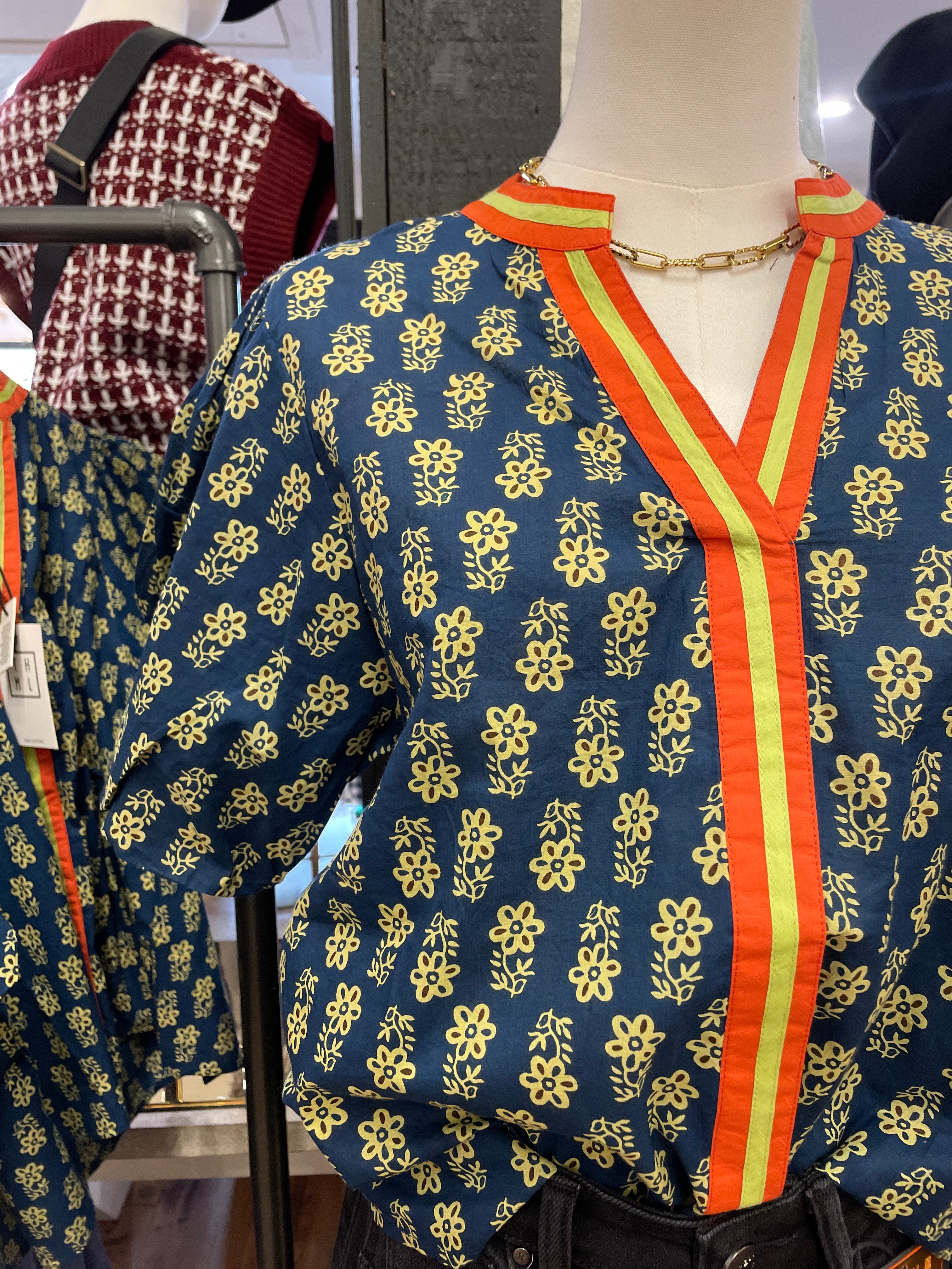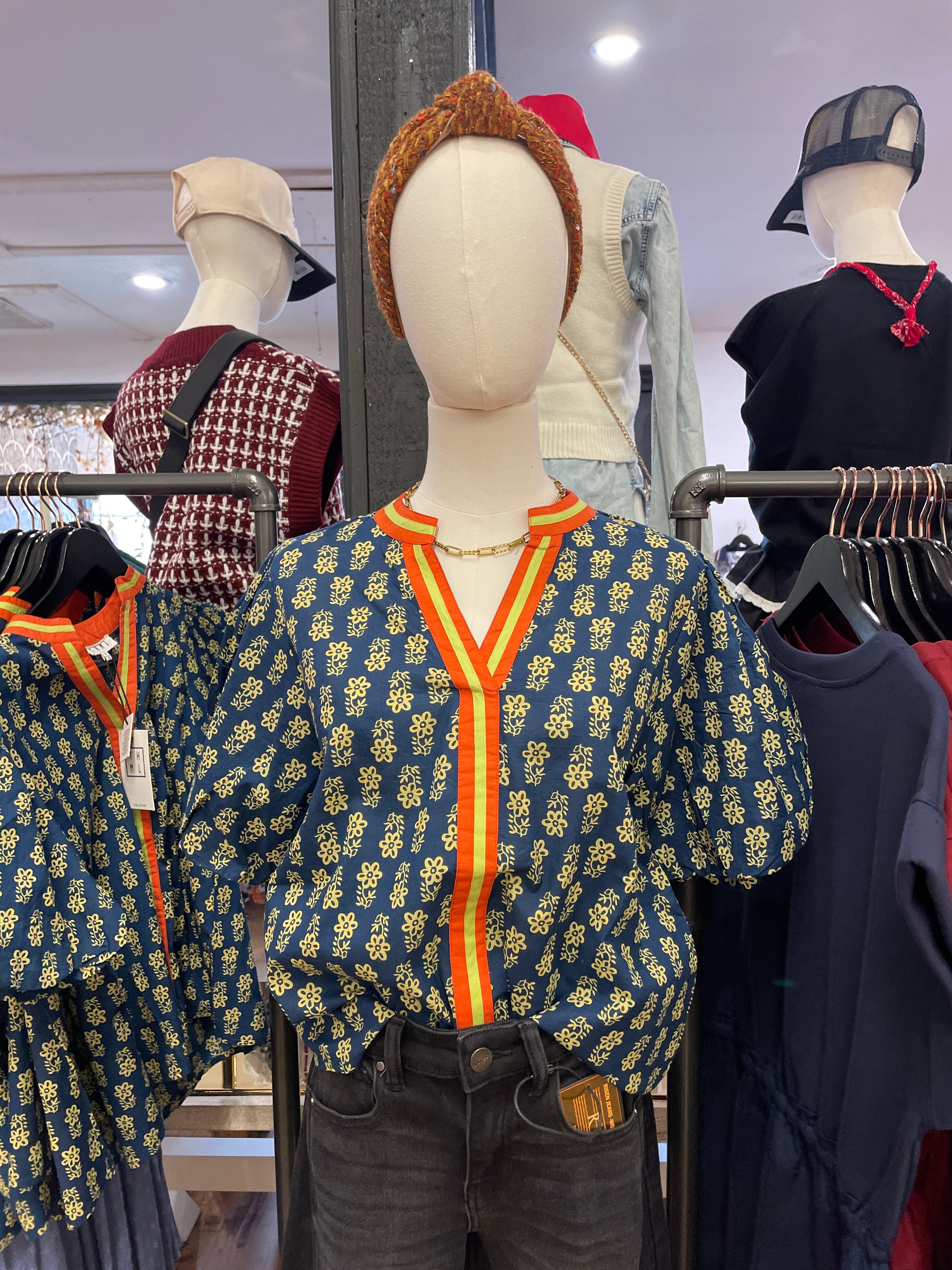This v-neck top is all about effortless charm with its delicate floral details and romantic puff sleeves. The flattering v-neckline adds a touch of femininity, while the subtle texture gives it that extra something special. Dress it up with tailored trousers or keep it casual with your favorite denim—either way, it’s a timeless staple with a fresh, flirty twist.