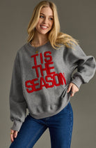 This holiday sweatshirt comes in a cozy, relaxed fit and is finished off with bold red chenille style letters across the front spelling out ’Tis the Season. It’s the perfect festive piece to slip on for Christmas parties, holiday shopping, or cozy nights by the tree. Pair it with your favorite jeans or leggings and you’re instantly in the spirit!