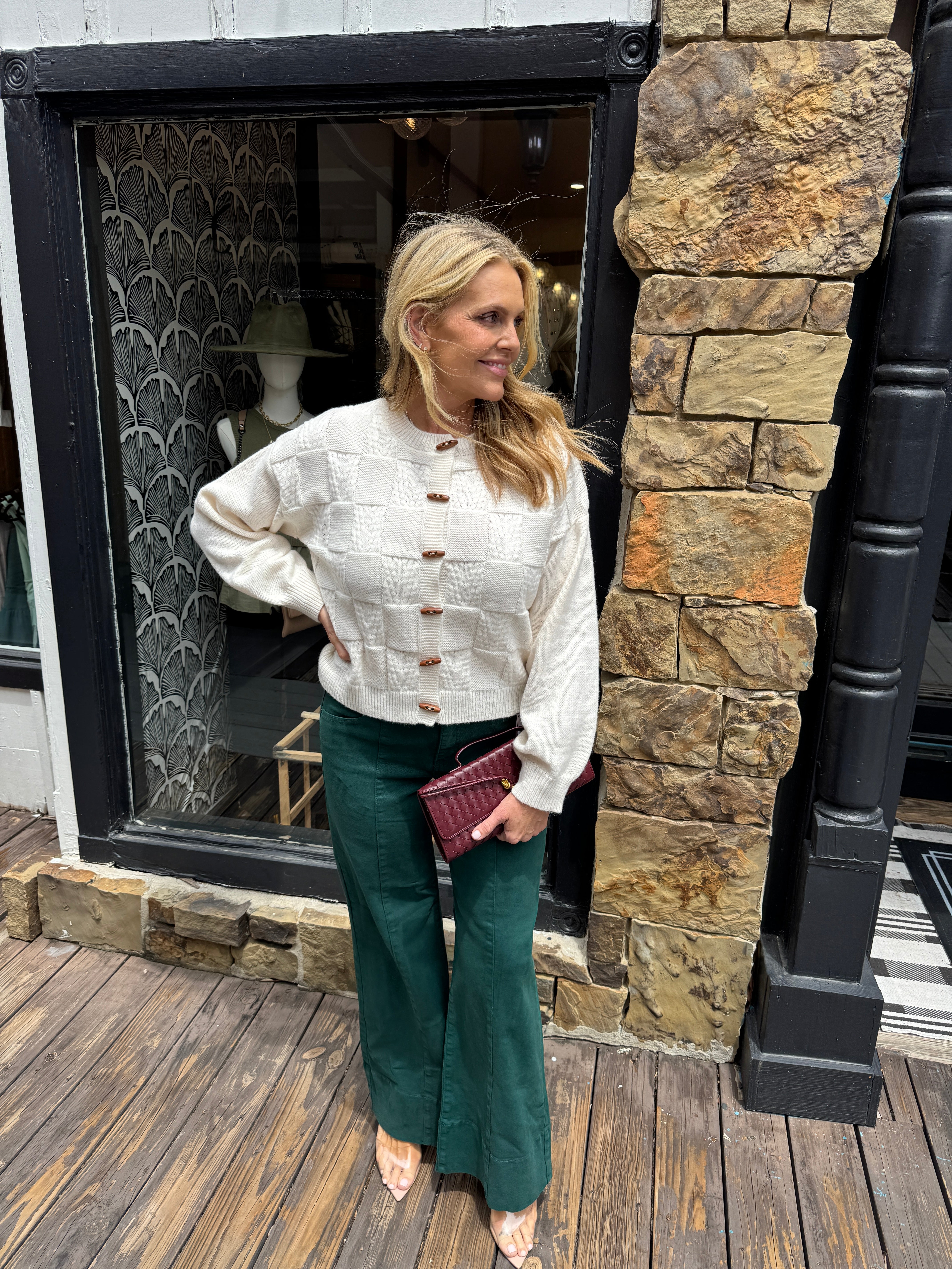 The coziest ivory cardigan you’ll ever own—finished with charming wooden buttons for a timeless touch. Wear it buttoned up as a chic top or draped over your shoulders for that effortless Cape Cod vibe. A must-have layering piece you’ll reach for all year long!”