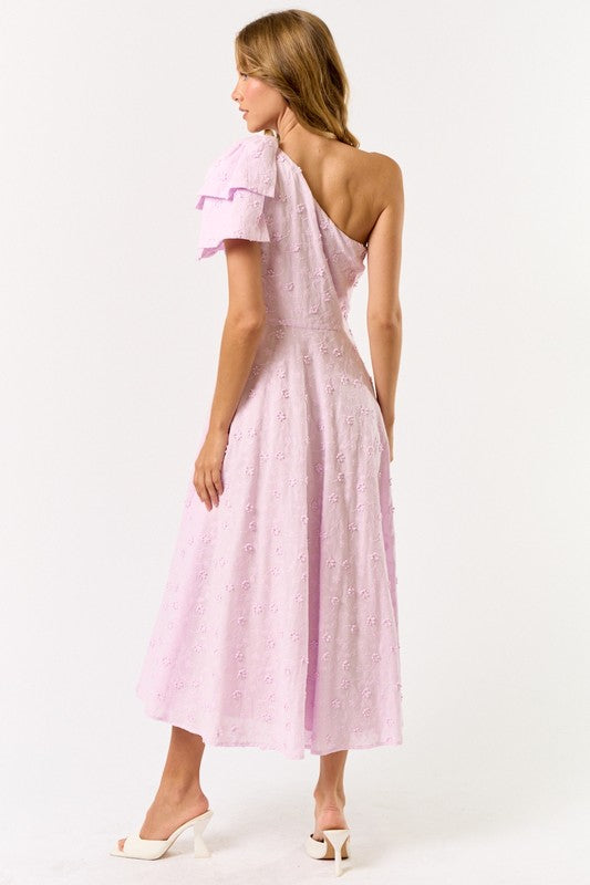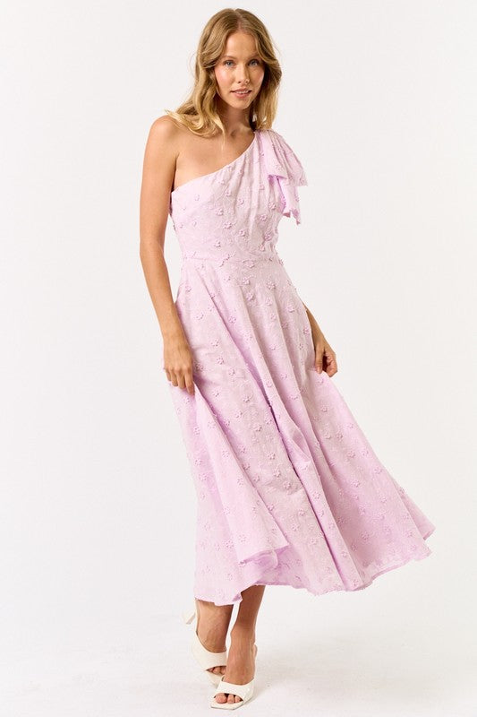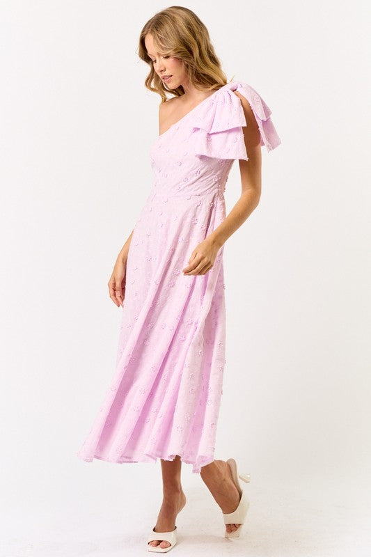 Steal the spotlight in this flirty, one shoulder, maxi dress, featuring a fabulous oversized bow that brings all the drama (in the best way). This dress is made for twirling, posing, and turning heads all night long.