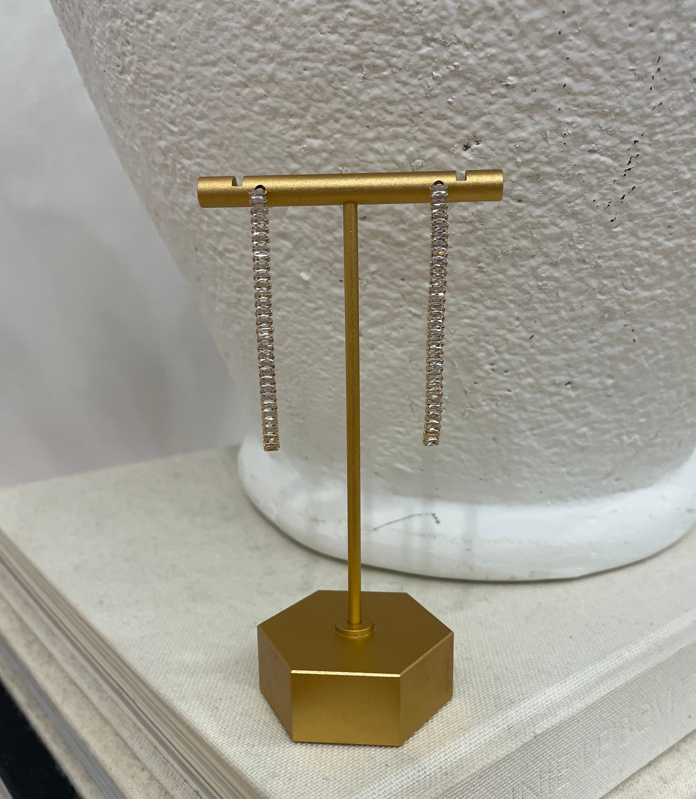 Make an elegant statement with our Dangling Crystal Earrings! With their eye-catching length, these earrings are sure to make you stand out and add a touch of class to your wardrobe.