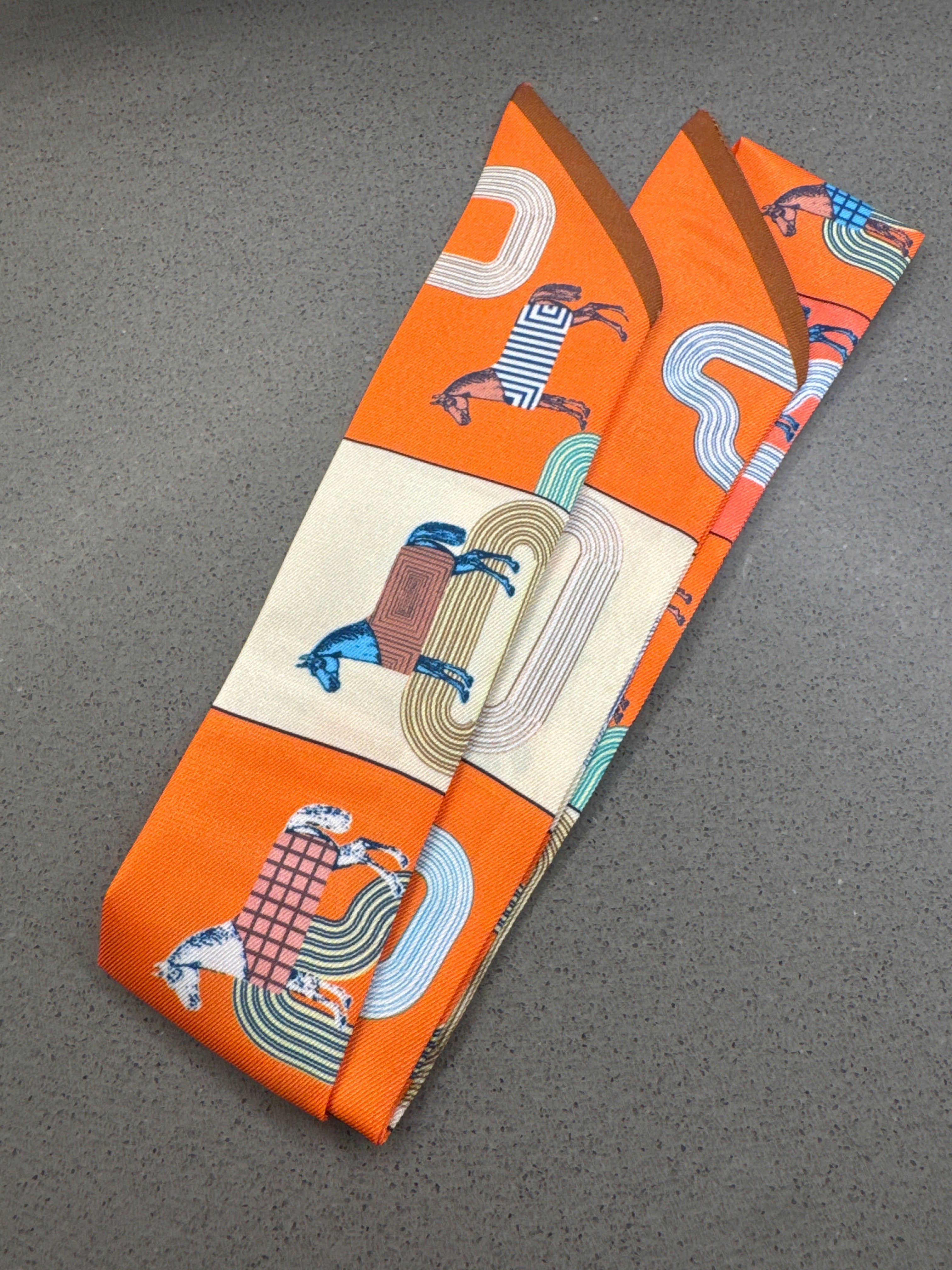 This equestrian scarf is where timeless style meets personal flair. Designed with classic horse-inspired patterns, it comes in a variety of rich colors to suit every mood and outfit. The real showstopper? You can customize it by adding a brass medallion or your favorite charm, making each wear uniquely yours. Whether tied around your neck, draped over your shoulders, or styled on a bag, it brings a refined equestrian touch to any look.