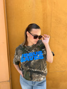 Stand bold in your faith with this oversized camo tee, designed for both comfort and statement-making style. The relaxed fit and soft cotton blend make it perfect for everyday wear, while the striking blue “Jesus Saves” lettering across the front brings a pop of color and a powerful reminder of truth. Easy to pair with denim, leggings, or layered under a jacket, this tee blends laid-back vibes with a message that matters.
