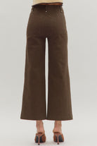 Elevated and effortless, these high-rise wide leg pants are designed with front seam detailing for a sleek, elongating look. Featuring back patch pockets and a classic zip-fly button closure, they strike the perfect balance of structure and ease. Lightweight, woven, and non-sheer, these pants are the ultimate versatile staple for dressing up or down.